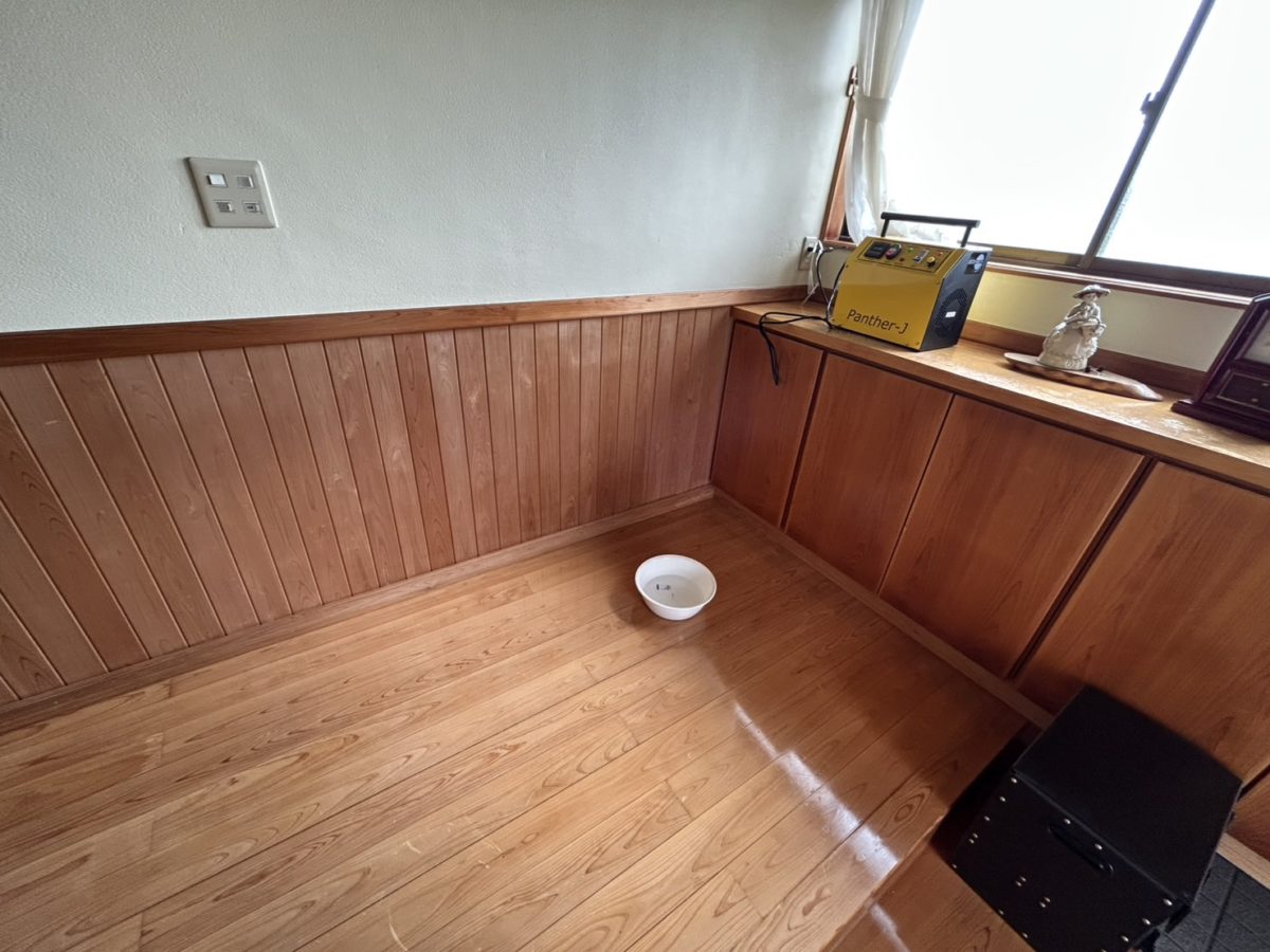 話をお伺いすると、汚染された布団や臭いのついた部屋の中の家財は撤去処分したのだけれど、まだ臭いが残っているためどうにかして欲しいとのことでした。